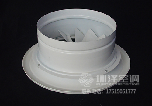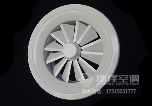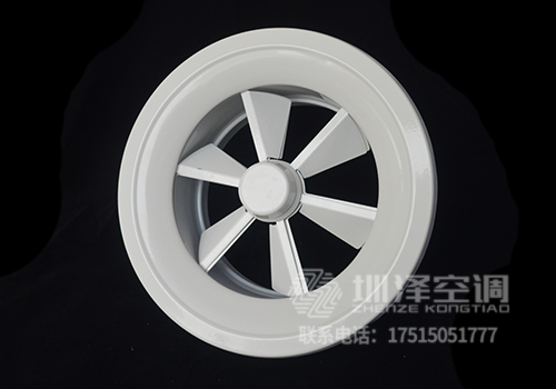 旋流風(fēng)口是空調(diào)系統(tǒng)中的一個排風(fēng)工具。在空調(diào)通風(fēng)系統(tǒng)中可用作大風(fēng)量,大溫差送風(fēng)以減少風(fēng)口數(shù)量,安裝在天花板或頂棚上,可用于3米以內(nèi)低空間,也可用二種高度大面積送風(fēng),高度甚至可達10米以上。