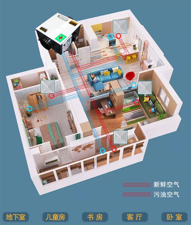 什么是雙向流新風(fēng)系統(tǒng)呢?雙向流新風(fēng)系統(tǒng)為強(qiáng)制排風(fēng)、強(qiáng)制送風(fēng),一側(cè)用專用設(shè)備向室內(nèi)送新風(fēng),再?gòu)牧硪粋?cè)由專用設(shè)備向室外排出,在室內(nèi)會(huì)形成"新風(fēng)流動(dòng)場(chǎng)",新風(fēng)主機(jī)通過管道與室內(nèi)的空氣分布器相連接,新風(fēng)主機(jī)不斷的把室外新風(fēng)通過管道送入室內(nèi),以滿足人們?nèi)粘I钏栊迈r、有質(zhì)量的空氣。排風(fēng)口與新風(fēng)口都帶有風(fēng)量調(diào)節(jié)閥,通過主機(jī)的動(dòng)力排與送來實(shí)現(xiàn)室內(nèi)通風(fēng)換氣。