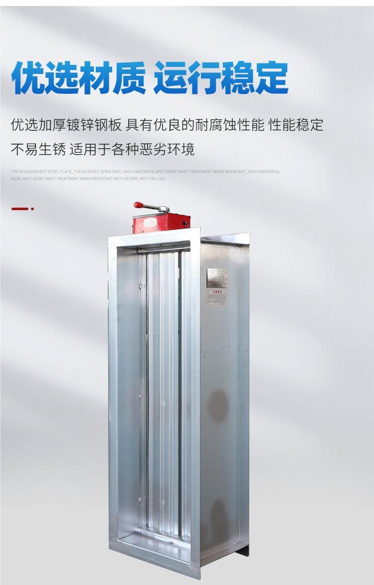 排煙防火閥是一種消防部件,一般安裝在機(jī)械排煙系統(tǒng)的管道上,平時呈開啟狀態(tài),發(fā)生火災(zāi)時開啟排煙,當(dāng)排煙管道內(nèi)煙氣溫度達(dá)到280度時關(guān)閉,并在一定時間內(nèi)滿足漏煙量和耐火完整性要求,起隔煙阻火作用。主要材質(zhì):碳素鋼、鍍鋅板、不銹鋼。