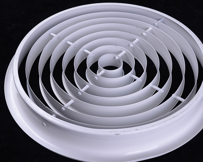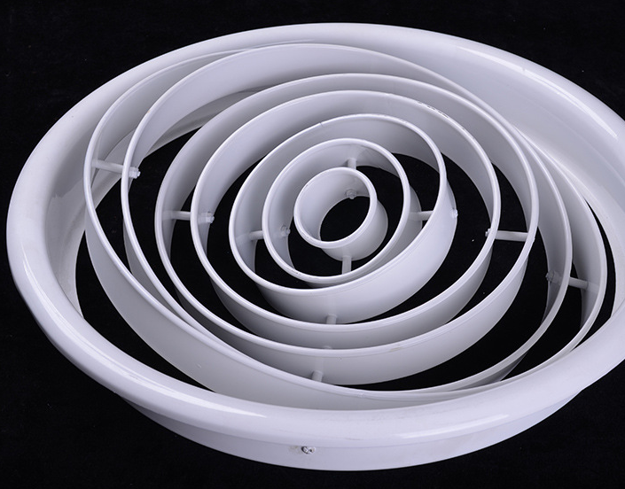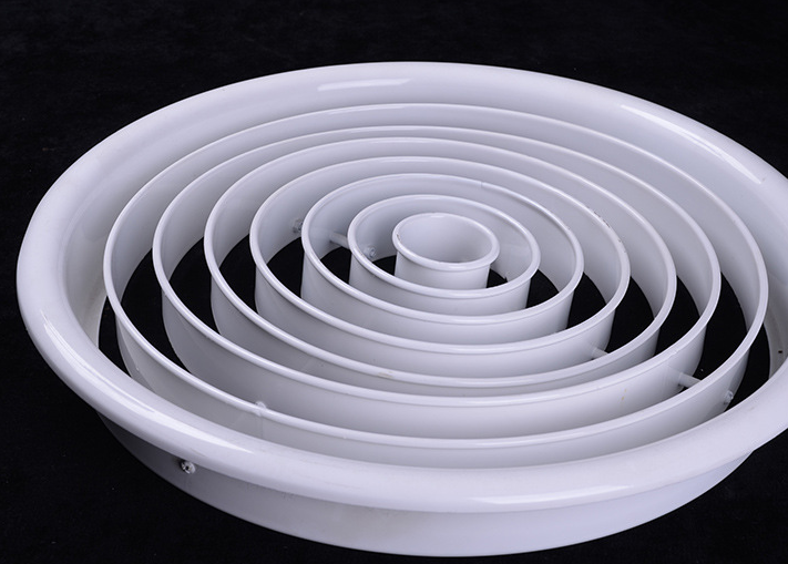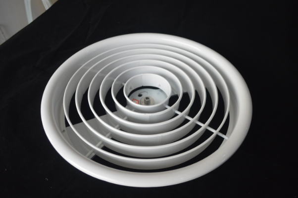 結(jié)構(gòu)外觀為圓形,內(nèi)心有多個圓環(huán)組成,能可上下45度調(diào)整風(fēng)口阻力小,適用于劇院,體育館及樓層較高的場所,可附加風(fēng)量調(diào)調(diào)節(jié)閥。產(chǎn)品外形美觀外。表面采用靜電噴塑,烤漆或者陽極處理。選用優(yōu)質(zhì)加厚鋁合金材料,更加耐用